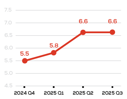 • Since 2024 Q2, the CDS has been consistently above 50 for four straight quarters. Prior to 2024 Q2, this was not the case since the 2019 Q4 score of 49.